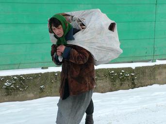 Keywords: woman winter snow people gypsies transcarpathia