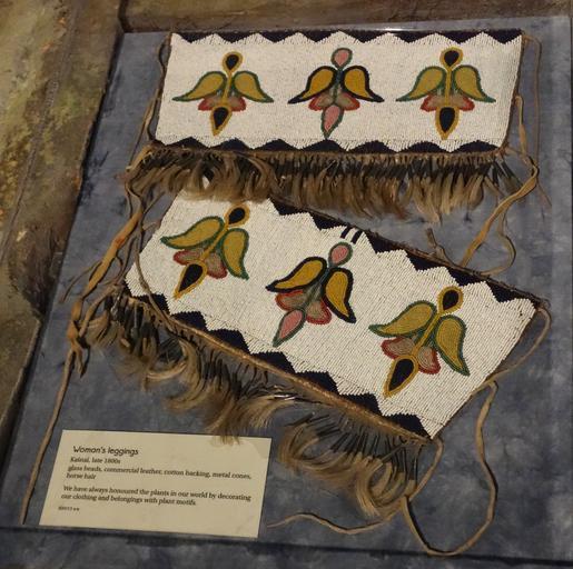 | View Original: | Woman's leggings, Kainai, late 1800s, glass beads, commercial leather, cotton backing, metal cones, horse hair - Glenbow Museum - DSC00978.JPG (3401x3379) | |||