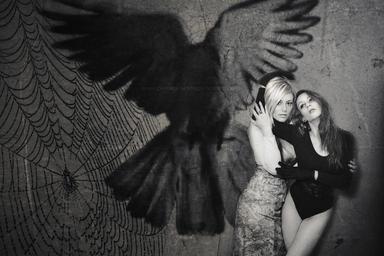 MAKE A MEME View Large Image women female halloween girls cobweb bird crow web models