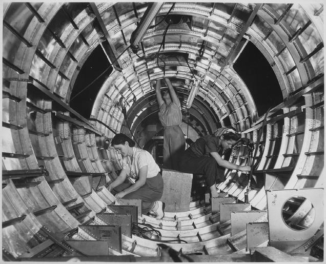 | Keywords: Women workers install fixtures and assemblies to a tail fuselage section of a B-17F bomber (the "Flying Fortress") at... - NARA - 535582.tif  Local identifier 208-AA-352X 1 Office for Emergency Management Office of War Information Overseas Operations Branch New York Office News and Features Bureau 12/17/1942 - 09/15/1945 NARA-Author Palmer Alfred Photographer 4407523 <br /> Still Picture Records Section Special Media Archives Services Division NWCS-S National Archives at College Park 8601 Adelphi Road College Park MD 20740-6001 ca 10/1942 Record group Record Group 208 Records of the Office of War Information 1926 - 1951 Record group ARC 535 Photographs of the Allies and Axis compiled 1942 - 1945 Series ARC 535523 Variant control numbers NAIL Control Number NWDNS-208-AA-352X 1 General notes Use War and Conflict Number 800 when ordering a reproduction or requesting information about this image Scope and content File unit File unit ARC yes Other versions NARA-cooperation PD-USGov B-17 assembly California Women at work in California 1942 Photographs by Alfred T Palmer at the Douglas Aircraft Plant in Long Beach California October 1942 Women at work in the United States in World War II Aircraft fuselages NARA images of Los Angeles County California 1942 Black and white photographs of women 1942 Black and white photographs 1942 Black and white photographs of Los Angeles 1942 |