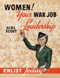 Keywords: Women your war job service.jpg Girl Scout leader beckoning In background photo of hundreds of girl scouts USGov 1941 1945 w United States Office of War Information PD-USGov World War II posters from the United States United States Office of War Information Wartime economy propaganda Women at work in the United States Girl Scouts of the USA |