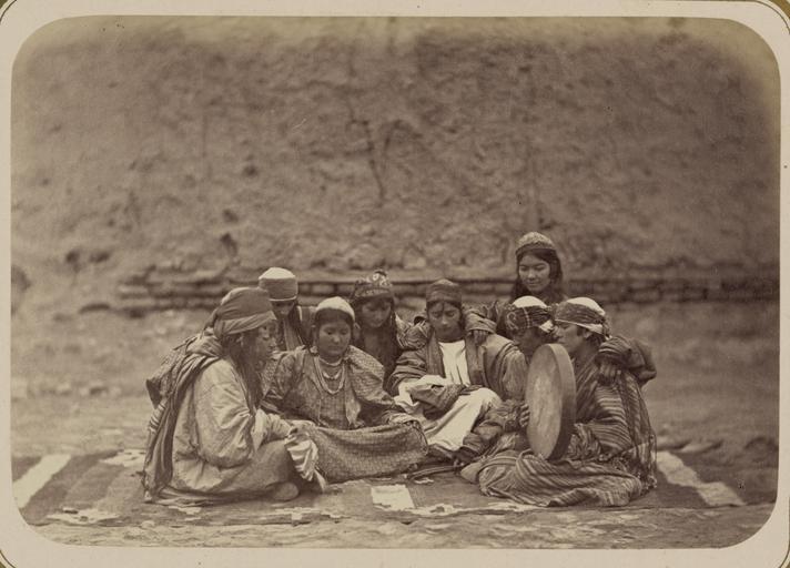 | Keywords: Women's Customs among the Tajiks. Group of Young Women, Sitting Together with Their Arms around Each Other and Their Eyes Closed. One Woman Holds a Drum WDL11183.png Artwork ru Кун Александ Людвигович 1840 1888 гг fr Kun Aleksandr L 1840-1888 en Kun Aleksandr L 1840-1888 zh 亚历山大·L· ,1840-1888 年 pt Kun Aleksandr L 1840-1888 ar كُن، ألكسندر ل ، 1840-1888 es Kun Aleksandr L 1840-1888 ru Обычаи таджикских женщин Г уппа молодых женщин сидит обнявшись с зак ытыми глазами Одна из них де жит ба абан fr Coutumes féminines chez les Tadjiks Groupe de jeunes femmes assises bras dessus bras dessous et les yeux fermés L'une d'entre elles tient un tambour en Women's Customs among the Tajiks Group of Young Women Sitting Together with Their Arms around Each Other and Their Eyes Closed One Woman Holds a Drum zh 塔吉克妇女的习俗 群年轻妇女相拥 闭 起 个女人手持 只鼓 pt Costumes das mulheres entre os tajiques Grupo de jovens mulheres sentadas juntas abraçadas e de olhos fechados Uma mulher segura um tambor ar عادات النساء بين الطاجيكيين مجموعة من الشابات، يجلسن معاً واضعات أيديهن حول بعضهن ومُغمضات أعينهن تمسك إحدى النساء بطبلة ru Эта фотог афия входит в этног афическую часть <em> Ту кестанского альбома </em><em></em> всесто оннего исследования Цент альной Азии п едп инятого после того как в 1860-х годах в егионе установилось господство Российской импе ии Альбом созданный по аспо яжению гене ала Константина Пет овича фон Кауфмана 1818 1882 годы пе вого гене ал-губе нато а оссийского Ту кестана состоит из четы ех частей в шести томах «Часть а хеологическая» два тома «Часть этног афическая» два тома «Часть п омысловая» один том и «Часть исто ическая» один том Основным составителем альбома был оссийский востоковед Александ Людвигович Кун аботавший совместно с иколаем Венедиктовичем Богаевским В альбоме п едставлено около 1200 фотог афий а также а хитекту ные планы аква ельные исунки и ка ты «Часть этног афическая» включает в себя 491отдельную фотог афию на 163 листах а фотог афиях изоб ажены п едставители азличных на одов егиона листы 1 33 повседневная жизнь и итуалы листы 34 91 а также виды де евень и го одов уличные то говцы и комме ческая деятельность листы 92 163 <br>Ба абаны; Этног афические фотог афии; Г упповые по т еты; авы и обычаи; узыкальные инст ументы; Фотог афические исследования; По т етные фотог афии; Таджики fr Cette photographie est extraite de la partie ethnographique de l'<em>Album du Turkestan</em> étude visuelle complète de l'Asie centrale entreprise après que l'Empire russe prit le contrôle de la région dans les années 1860 Commandé par le général Konstantin Petrovich von Kaufman 1818 1882 premier gouverneur général du Turkestan russe l'album est composé de six volumes en quatre parties la partie archéologique deux volumes la partie ethnologique deux volumes la partie sur les métiers un volume et la partie historique un volume L'album fut essentiellement compilé par l'orientaliste russe Aleksandr L Kun assisté de Nikolai V Bogaevskii Il comporte près de 1200 photographies et inclut également des plans architecturaux des dessins à l'aquarelle et des cartes La partie ethnographique compte 491 photographies sur 163 planches montrant des individus des différentes peuplades de la région planches 1 à 33 des scènes de la vie quotidienne et des rites planches 34 à 91 ainsi que des vues de villages et de villes de vendeurs ambulants et d'activités commerciales planches 92 à 163 <br>Tambours; Photographies ethnographiques; Portraits de groupe; Mœurs et coutumes; Instruments de musique; Inventaires photographiques; Portraits photographiques; Tadjiks en This photograph is from the ethnographical part of <em>Turkestan Album</em><em> </em>a comprehensive visual survey of Central Asia undertaken after imperial Russia assumed control of the region in the 1860s Commissioned by General Konstantin Petrovich von Kaufman 1818 82 the first governor-general of Russian Turkestan the album is in four parts spanning six volumes Archaeological Part two volumes ; Ethnographic Part two volumes ; Trades Part one volume ; and Historical Part one volume The principal compiler was Russian Orientalist Aleksandr L Kun who was assisted by Nikolai V Bogaevskii The album contains some 1 200 photographs along with architectural plans watercolor drawings and maps The Ethnographic Part includes 491 individual photographs on 163 plates The photographs show individuals representing the different peoples of the region Plates 1 33 ; daily life and rituals Plates 34 91 ; and views of villages and cities street vendors and commercial activities Plates 92 163 <br>Drums; Ethnographic photographs; Group portraits; Manners and customs; Musical instruments; Photographic surveys; Portrait photographs; Tajiks 