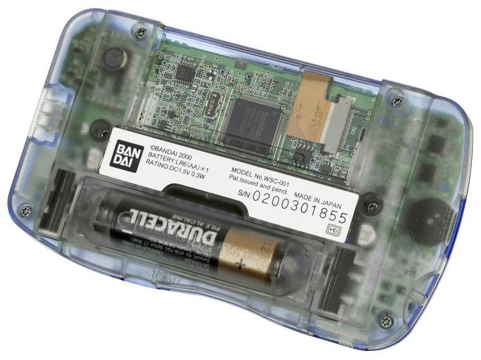 | Keywords: WonderSwan-Color-Back-wBattery.jpg The back of a WonderSwan Color handheld gaming console The console uses a single AA battery for power and is quoted at 20 hours of battery life own 2014-05-25 Evan-Amos User Evan-Amos/EABanner Taken with Nikon D7100 Electronic devices on white background WonderSwan AA batteries Handheld game console motherboards |
