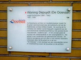 Keywords: WoningDepuydt2.jpg en Information board nl Informatiepaneel own Berthgmn 2010 Joseph De Bruycker Cubist architecture Onroerend erfgoed in Ostend Buildings in Ostend Information boards Plaques in Belgium