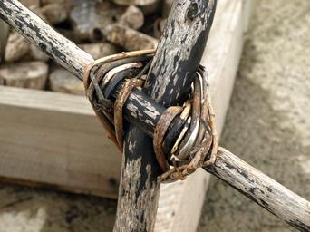 Keywords: wood connection cross knot together bars rod insert woods art fence