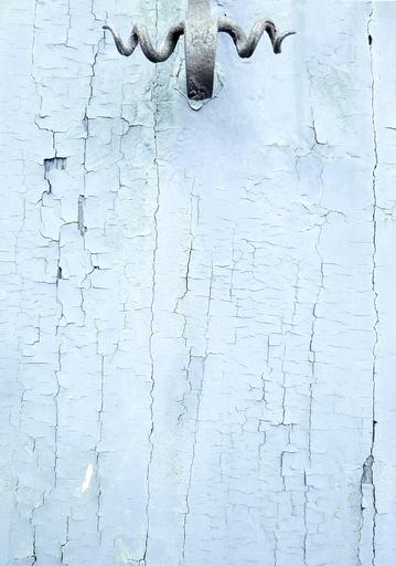 Keywords: wood timber texture background pattern cyan light blue aqua white grey cracked scratched weathered door handle metal old handle metal handle wrought iron black no people day 2016 outdoor empty outside