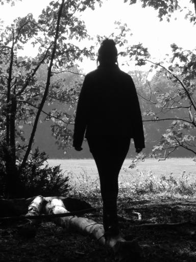 Keywords: wood tree autumn girl forest balance balancing leaves