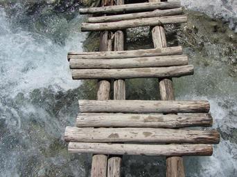 Keywords: wooden bridge samaria gorge island of crete greece river creek water passage cross danger dangerous