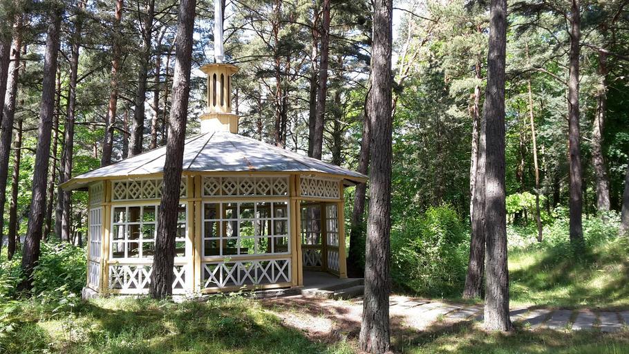 Keywords: wooden house gazebo forest pine lithuania palanga pine forest