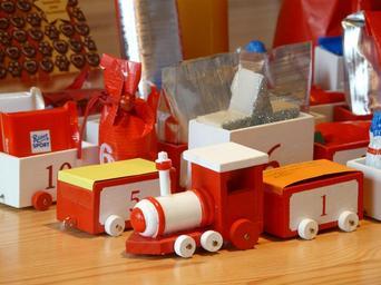 Keywords: wooden train toys advent calendar train gifts nicholas wagons packed surprise advent