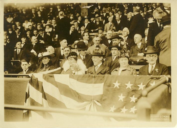 | Keywords: edith bolling galt edithbollinggalt president wilson baseball game yankees senators monochrome Local Accession Number: 981 Description: President Woodrow Wilson and wife Edith watch the season opener of the Washington Senators on April 20, 1916. Wilson threw out the opening ball and the Senators defeated the Yankees 12-4. Photographer: Harris and Ewing Source: Unknown Size: 5x7 Medium: Print, Sepia Date: 04-20-1916 Local Accession Number: 981 Description: President Woodrow Wilson and wife Edith watch the season opener of the Washington Senators on April 20, 1916. Wilson threw out the opening ball and the Senators defeated the Yankees 12-4. Photographer: Harris and Ewing Source: Unknown Size: 5x7 Medium: Print, Sepia Date: 04-20-1916 |