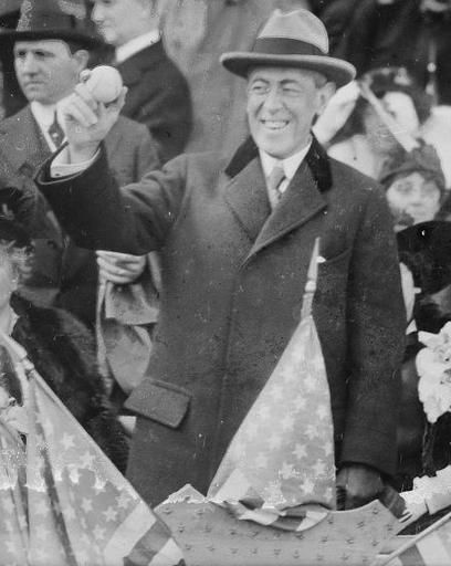 | Keywords: Woodrow Wilson at 1915 World Series (cropped).jpeg Woodrow Wilson throws out the first pitch at the 1915 World Series To his left is his mother in-law Sallie White Bolling 1843-1925 and to his right is mayor Rudolph Blankenburg Library of Congress Prints and Photographs Division LC-DIG-ggbain-20103 digital file from original negative http //www loc gov/pictures/resource/ggbain 20103/ Bain News Service publisher 1915-10-09 PD-Bain ggbain 20103 Woodrow Wilson at 1915 World Series jpeg Woodrow Wilson 1915 World Series Ceremonial first pitch Major League Baseball Files uploaded by PDTillman |