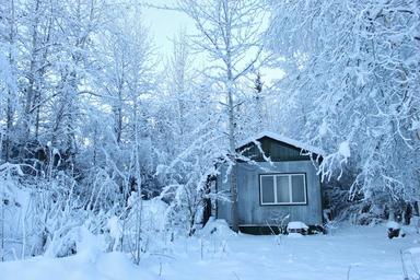 Keywords: woods house white winter cold snow ice cabin tree home