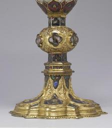 | Keywords: Workshop of Paolo di Giovanni Fei - Chalice - Walters 44223 - Detail A.jpg Family workshops were very common among goldsmiths which can sometimes make attribution difficult One of the most celebrated fourteenth-century goldsmiths Tondino active 1308-ca 1338 was the son of a goldsmith named Gerrino Tondino's brother and son both named Giacomo were also in the profession This chalice with the busts of the apostles was likely produced in that workshop signed by Giacomo of Siena who might be either the son or the grandson of the elder Guerrino The extent of the collaboration between this Giacomo and Paolo di Giovanni whose name also appears on the chalice is uncertain Paolo could have been a permanent member of the workshop or an associate engaged only occasionally for specific commissions The chalice is enhanced by the addition of basse-taille enamels a technique developed in Italy during the late thirteenth century in which translucent enamels are applied to metal surfaces that have been chased and engraved in low relief producing a brilliant painterly effect Siena was widely known as an important center for the production of basse-taille enamels century 14 Medieval silver gilded copper basse-taille enamel cm 22 4 13 5 13 5 accession number 44 223 26370 Raoul Heilbronner Paris date of acquisition unknown by purchase Henry Walters city Baltimore Walters Art Museum Henry Walters Acquired by Henry Walters 1913 Signature around the stem Paulo di Giovani e and Iacomo de Seni The International Style The Arts in Europe Around 1400 The Walters Art Gallery Baltimore 1962 The Book of Kings Art War and the Morgan Library's Medieval Picture Bible The Walters Art Museum Baltimore; Academy of the Arts Easton Easton; Princeton University Art Museum Princeton; The Mitchell Gallery Annapolis; Williams College Museum of Art Williamstown 2002 For This is My Body The Medieval Missal The Walters Art Museum Baltimore 2006-2007 Realms of Faith Medieval and Byzantine Art from the Walters Art Museum Museum of Biblical Art New York; Colby College Museum of Art Waterville; Joslyn Art Museum Omaha 2008-2009 place of origin Bologna Italy Walters Art Museum license Medieval metalwork in the Walters Art Museum Paolo di Giovanni Fei Media contributed by the Walters Art Museum needs category review Media contributed by the Walters Art Museum needs artist review Basse-taille enamel |