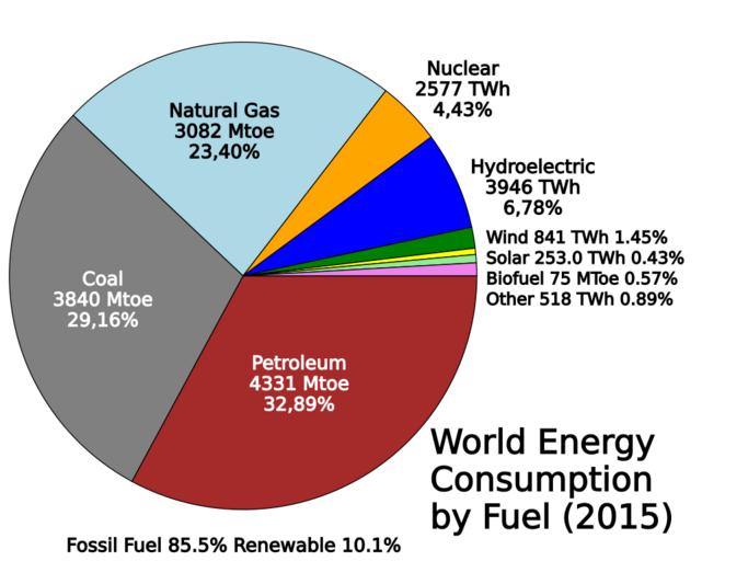 | Keywords: World energy consumption by fuel.svg translate yes en World primary energy consumption by fuel based on data from BP Statistical Review of World Energy 2016http //www bp com/en/global/corporate/energy-economics/statistical-review-of-world-energy html Combustibles are reported in Mtoe nuclear and renewables that are used to produce electricity are reported in TWh The percentages though are based on Mtoe conversions and differ from comparisons that use actual energy 2014-06-25 own Delphi234 current annually cc-zero Energy use comparisons Energy statistics |