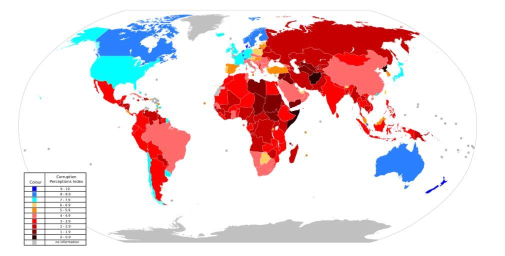 Keywords: World Map Index of perception of corruption 2010.svg Indice de Percepción de corrupción en azul están los países con menor corrupción en rojo los de mayor corrupción Corruption Perceptions Index in blue are the countries with less corruption in red the ones with more corruption perception de la corruption en bleu les pays les moins corrompus en rouge sombre les plus corrompus perceptie van de corruptie in het blauw zijn de landen met minder corruptie in het rood de landen met meer corruptie bn বিশ্বব্যাপ শতাংশে আন্তর্ াতিক দুর্ন তি সূচকের মানচিত্র ন ল রঙের দেশগুলো কম দুর্ন তি প্রবণ এবং লাল রঙের দেশ গুলো বেশ দুর্ন তি প্রবণ। Індекс сп ийняття ко упції айменш ко умповані к аїни показані синім кольо ом найбільш ко умповані темно-че воним Индекс п инятия ко упции Синим цветом показаны ст аны с наименьшим у овнем ко упции наибольшим у овнем - темно-к асным Derivative of File World Map Index of perception of corruption 2009 svg derivate work Talkstosocks Corruption |