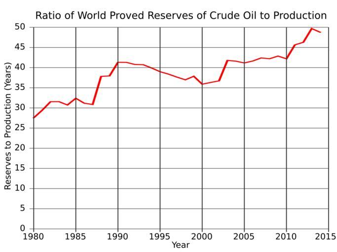 | Keywords: World Reserves to Production Crude Oil.svg en Ratio world proved crude oil reserves to production Data from US DOE EIA http //www eia gov/cfapps/ipdbproject/IEDIndex3 cfm tid 5 pid 53 aid 1 Data is in plain text in the svg file and can be updated with a text editor 2014-06-07 own Delphi234 current annually cc-zero Uploaded with UploadWizard Oil reserves |