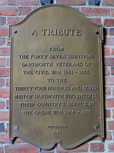 | Keywords: World War I memorial from Civil War veterans - Dartmouth College - DSC04663.JPG en Memorial at Dartmouth College Hanover New Hampshire USA 2013-08-19 11 49 20 own Daderot PD-US-no notice cc-zero Monuments and memorials at Dartmouth College Uploaded with UploadWizard |
