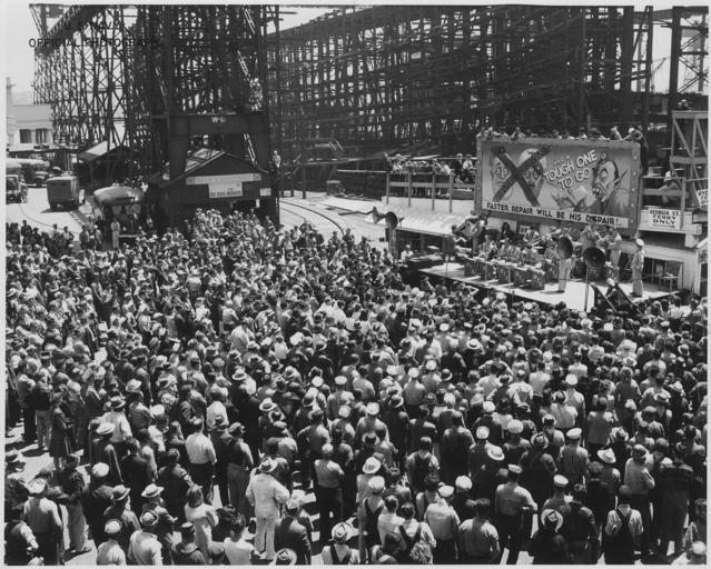 | Keywords: "World War II bond rally , AJC Band, from Hamilt6on Field at US Navy Yard, Mare Island, Ca." - NARA - 296895.jpg Scope and content General notes 296895 Local identifier Department of Defense Department of the Navy Mare Island Naval Shipyard Office of the Commander Office of the Shipyard Historian 1976 - ca 1996 NARA's Pacific Region San Bruno NRHAS 1000 Commodore Drive San Bruno CA 94066-2350 1945-06-26 Record group Record Group 181 Records of Naval Districts and Shore Establishments 1784 - 2000 Record group ARC 510 Subject Files compiled 1976 - 1996 documenting the period ca 1854 - ca 1996 Series ARC 296821 File unit World War II Activities 1939 - 1945 File unit ARC 296893 Variant control numbers NAIL Control Number NRHS-181-MINSYHISTSUBJ-WWIIACTIV-WWII 2 Other versions <gallery> File World_War_II_bond_rally_ _AJC_Band _from_Hamilt6on_Field_at_US_Navy_Yard _Mare_Island _Ca _-_NARA_-_296895 tif tif File World_War_II_bond_rally_ _AJC_Band _from_Hamilt6on_Field_at_US_Navy_Yard _Mare_Island _Ca _-_NARA_-_296895 jpg jpg </gallery> NARA-cooperation PD-USGov 1945 in California World War II in 1945 Mare Island Naval Shipyard War bonds Political rallies Propaganda cartoons 1940s political cartoons of the United States |