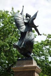| Keywords: World War Memorial - Fitchburg, Massachusetts - DSC08567.JPG A loosely draped female figure holding a furled flag in her proper left hand stands atop a tall square base Her proper right hand is extended bestowing honor on those who died during World War I On her armored breast plate is the insignia of the United States As she walks her cloak is carried back by the breeze creating the effect of wings Inscription Herbert Adams MCMXXVIII On front of base TO THE MEMORY OF THOSE/WHO GAVE THEIR LIVES IN/THE WORLD WAR - 1914-1918/THE CITY OF FITCHBURG/DEDICATES THIS MONUMENT On bronze plaque west side of base These Gave Their Lives list of 63 who died during the war signed This artwork is the public domain because it was published in the United States between 1923 and 1963 with its copyright not renewed 2013-06-14 14 37 54 own Daderot PD-US-not renewed cc-zero World War Memorial Fitchburg Massachusetts Uploaded with UploadWizard |