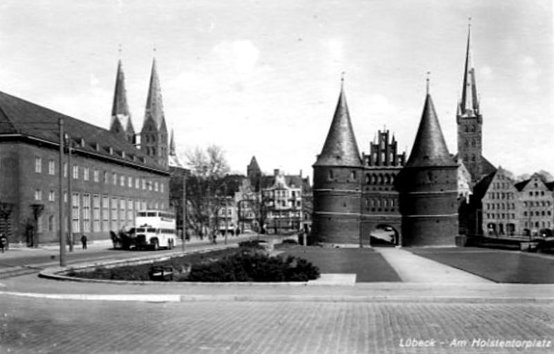Keywords: WP Holstentorplatz vor 1938.jpg en Holstentorplatz square in Lübeck Must date from between 1934 when the square was built and 1938 when the name was changed to Adolf-Hitler-Platz Clearly a pre-war photo since the churches show no bombing damages and the park has its pre-war layout de Der Holstentorplatz in Lübeck Stammt aus der Zeit zwischen 1934 als der Platz angelegt wurde und 1938 als der Name zu Adolf-Hitler-Platz geändert wurde Eindeutig ein Vorkriegsfoto da die Kirchen keine Kriegsschäden zeigen und die Parkanlage noch die Vorkriegsgestaltung aufweist Photographic postcard Anonymous photographer not identified anywhere Holstentorplatz Deutsche Bundesbank Lübeck Anonymous-EU |