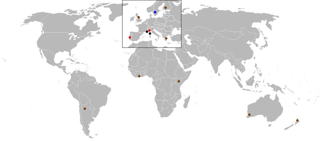 | Keywords: WRC-1989.png Map of World Rally Championship rallies held in 1989 Color coding is black for tarmac events brown for gravel blue for snow/ice and red for mixed surface events 2007-03-27 Josh Baumgartner Josh 16 30 27 March 2007 UTC Public domain World Rally Championship maps 1989 in auto racing |