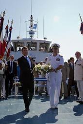 Keywords: Wreath-laying ceremony 130815-N-EZ054-029.jpg en U S Ambassador to France and Monaco Charles H Rivkin left and Capt Craig Clapperton commanding officer of the U S 6th Fleet flagship USS Mount Whitney LCC 20 carry a wreath during a wreath-laying ceremony in honor of the 69th anniversary celebration of allied troops landing in Provence during World War II The visit serves to continue U S 6th Fleet efforts to build global maritime partnerships with European nations and improve maritime safety and security U S Navy photo by Mass Communication Specialist Seaman Luis R Chavez Jr /Released 2013-08-15 Seaman Luis Chavez https //www dvidshub net/image/996386 130815-N-EZ054-029 2013-08-15 19 42 THEOULE-SUR-MER FR PD-USGov-Military-Navy USS Mount Whitney LCC-20 Images from DoD uploaded by Fæ