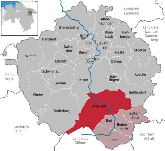 | Keywords: Wrestedt in UE.svg DeLocMaps Wrestedt Landkreis Uelzen District of Uelzen Uelzen district L'arrondissement d'Uelzen Arrondissement d'Uelzen Niedersachsen Lower Saxony Basse-Saxe TUBS/Translation Adobe Illustrator <br/> based on <br/> File Lower Saxony location map svg NordNordWest<br/> http //www geodaten niedersachsen de/master/C17415881_N17416128_L20_D0_I15258844 htm Niedersachsen Viewer<br/> http //www geomdk niedersachsen de/data/lgn/info/dgm5_lk360 pdf Koordinierungsstelle GDI-NI beim Landesbetrieb Landesvermessung und Geobasisinformation Niedersachsen DGM 5 Verfügbarkeit Landkreis/Stadt Landkreis Uelzen<br/> File Locator map UE in Lower Saxony svg TUBS 2010-10-05 Hagar66 based on work of TUBS Hagar66/licensesection Attribution TUBS/Credits Locator maps of municipalities in Landkreis Uelzen Wrestedt |