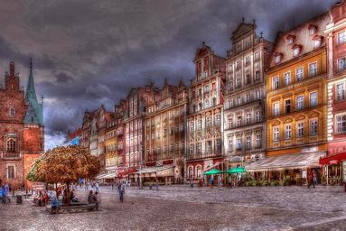 Keywords: wrocław architecture townhouses colored townhouses old houses monuments the old town the city centre the market old town towers the town hall façades architectural ornaments city figure style mood