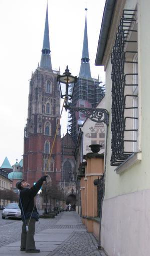 | Keywords: Wroclaw latarnik na Ostrowie Tumskim.jpg thumb November 29th Wrocław Poland - Ostrów Tumski Cathedral Island lamplighter during his work November 30th 2005 Wrocław - Ostrów Tumski latarnik przy pracy 30 listopada 2005 St John Cathedral Church in Wrocław Street lights in Wrocław bracket lanterns Lamplighters Gas lanterns bracket lanterns |