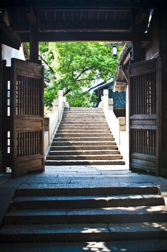 Keywords: wuzhen building ancient architecture china wind antiquity the ming and qing dynasties huizhou architecture wood frame wooden tile green black white line door brown ishibashi tree plant green lamp