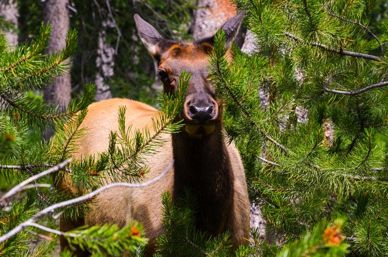 Keywords: wyoming usa america roe deer nature yellowstone national park conifers firs wild animal animal mammal