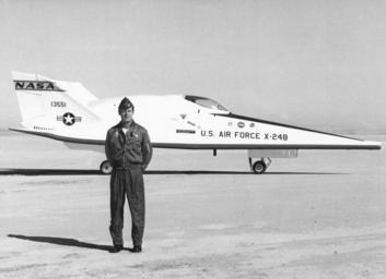 Keywords: X-24 DVIDS843207.jpg en E-29374 This photo shows Air Force Lieutenant Colonel Michael V Love in front of the X-24B lifting body research vehicle at Edwards Air Force Base in 1976 Love was assigned as a project pilot on the joint NASA-USAF X-24B Lifting Body flight test program at the NASA Flight Research Center He made a total of 12 flights in the plane from October 4 1973 until July 15 1975 Love flew it to a speed of Mach 1 76 on October 25 1974 a record for the X-24B Love attended the USAF Test Pilot School and remained as an instructor there from 1969 through 1971 He was a test pilot at Edwards when assigned to fly to the X-24B Love was a combat veteran of Vietnam and was awarded the Distinguished Flying Cross with two Oak Leaf clusters Love perished while attempting an emergency landing in an RF-4C on March 1 1976 less than a month after this photo was taken The X-24B was the last aircraft to fly in the Dryden Flight Research Center's manned lifting body program February 1976 NASA Photo / NASA NASA Identifier 343777main_E-29374 2010-06-15 Glenn Research Center https //www dvidshub net/image/843207 843207 2013-02-08 09 35 WASHINGTON D C US PD-USGov Aircraft at Rogers Dry Lake Images from DoD uploaded by Fæ Martin-Marietta X-24