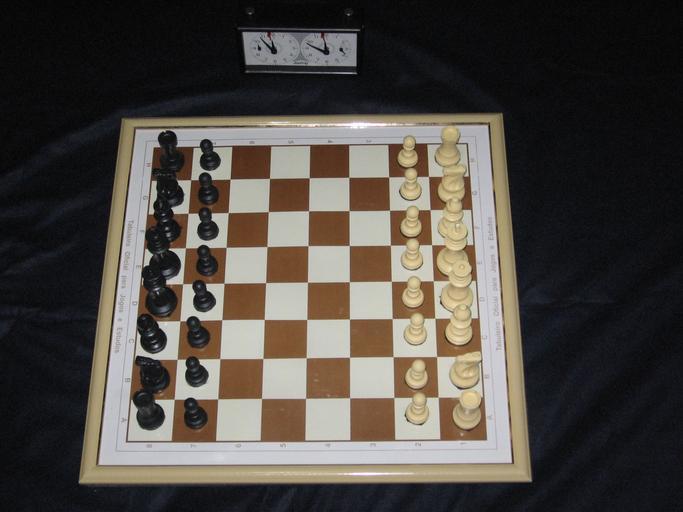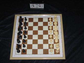 Keywords: Xadrez inicial 2.jpg A sample of official size chess pieces in the starting position on a board with algebraic notation markings A chess clock is nearby own 2007-03-14 Luis Dantas Chess sets Files by User Luis Dantas Taken with Canon PowerShot A520 |