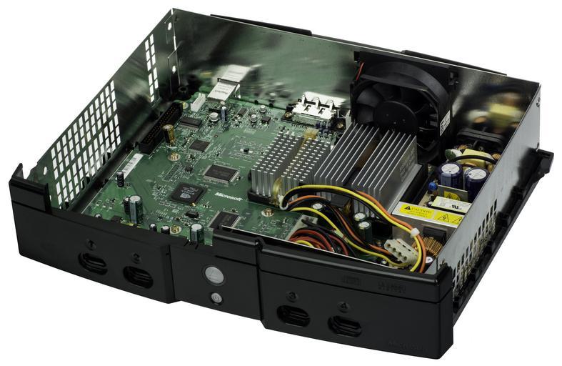 Keywords: Xbox-Console-Open-FL.jpg en The inside of an Xbox a sixth-generation gaming console made by Microsoft that was first released in 2001 The Xbox was Microsoft's first foray into the gaming console market and was followed by the Xbox 360 in 2005 This picture shows the inside of console with the DVD and hard drives removed <p>The console shown is the 1 6 hardware revision which was the last version of the console hardware that featured component reduction and streamlining Manufacture date of the console is 2004-11-18 making this one of the last Xbox consoles made own Evan-Amos 2014-08-20 User Evan-Amos/EABanner Xbox Electronic devices on white background Home game console motherboards |