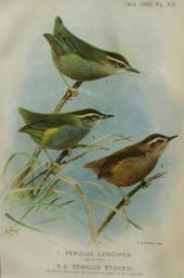 Keywords: Xenicus longipes.jpg Xenicus longipes medium Subspecies X l longipes Xenicus stokesi medium Subspecies X l stokesi Hand coloured lithographs showing Xenicus longipes stokesi and Xenicus longipes longipes Plate XII from Birds from New Zealand the Kermadec Islands and the Islands to the South of New Zealand Artwork by John Gerrard Keulemans 1842-1912 Dutch bird illustrator THE IBIS QUARTERLY JOURNAL OF ORNITHOLOGY VOL V Eighth Series 1905 http //extinct-website co uk/product_info php cPath 22_58 products_id 531 1905 Creator John Gerrard Keulemans PD-old-100 Xenicus longipes John Gerrard Keulemans Ibis 1905 Images with watermarks |