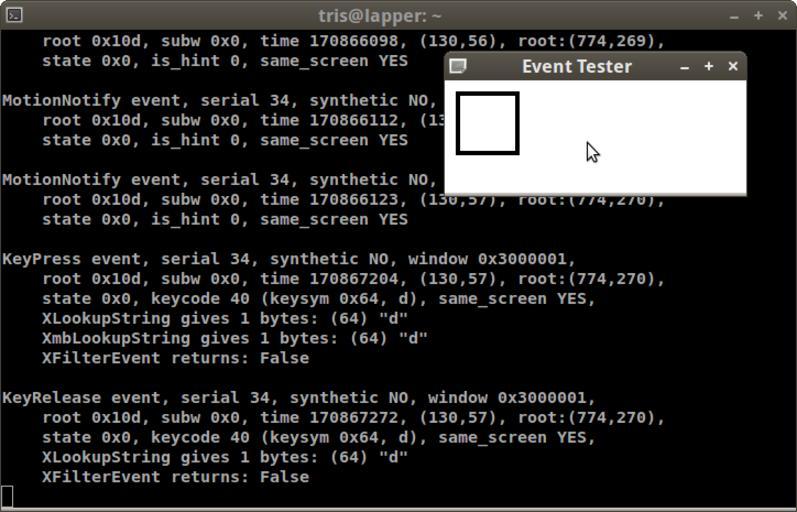 | Keywords: Xev command.png  Running the xev command on a GNU/Linux operating system Looks like I moved the cursor around and hit d I took the screenshot 2013-04-28 Palosirkka <span class signature-talk >talk</span> 21 17 27 April 2013 UTC Cc-zero Screenshots of free software |