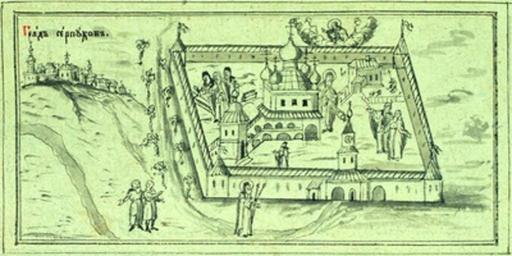 Keywords: Высоцкий монастырь Серпухов XIX в.jpg ru Высоцкий монасты ь Се пухов ач XIX в Рисунок из сбо ника соде жащего житие п п Афанасия ладшего и службу ему СИХ КП 1691/СТ 7408 Л 54 об http //www pravenc ru/data/953/466/1234/i200 jpg author ач XIX в PD-old PD-RusEmpire Vysotsky Monastery Museum of Solvychegodsk