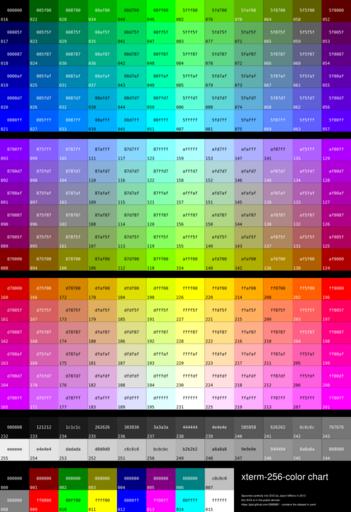 Keywords: Xterm 256color chart.svg ;Other information This upload is a re-worked version of the existing chart on the Xterm page the existing chart has been placed in the public domain by its author bmdavll I am also placing my SVG version in the public domain from a list of colors matching the PNG on Wikipedia xterm page by bmdavll 2012-06-05 Jasonm23 Cc-zero Lowercase Lowercase title Original upload log en wikipedia Xterm_256color_chart svg wikitable - 2012-06-04 16 04 960×1400× 65589 bytes Jasonm23 Uploading a self-made file using File Upload Wizard Color charts |