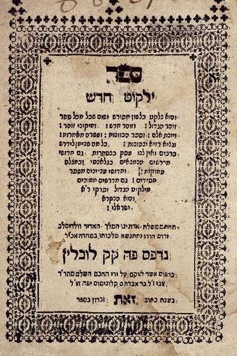 Keywords: Yalkut Hadash.jpg Book Israel ben Benjamin of Bełżec 1648 Lublin Hebrew Yalkut Hadash Artwork en A leaf from the Sefer ha-Zohar Yalkut Hadash pl Karta z Sohar Seifer Jalkut Chadasz print paper Warsaw Institution National Library Warsaw en The Yalkut Hadash is an alphabetically arranged collection of homilies taken from diverse kabbalistic midrashic and aggadic works Halina Tchórzewska-Kabata Maciej Dąbrowski 2000 Nad złoto droższe skarby Biblioteki Narodowej More precious than gold treasures of the National Library Biblioteka Narodowa ISBN 83-70092-97-7 BN XVII 3 7148 1648 Unknown Lublin Copyright expired PD-Art Other versions PD-old-100-1923 Old printed books in the National Library in Warsaw Books published in the Polish-Lithuanian Commonwealth Kabbalistic texts Title pages of Hebrew books 1648 books |