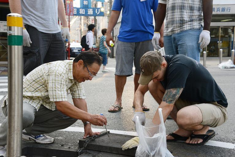 | Keywords: Yamato Station cleanup 130808-N-EI558-180.jpg en Naval Air Facility Atsugi Aviation Machinist's Mate 1st Class Heath Mushitz and a member of the Let's Learn From Clean Up Yamato group clear a storm drain of debris during the monthly Yamato Station cleanup During the event volunteers take time to clean the streets and sidewalks outside the train station in an effort to foster positive relations between the base and local communities U S Navy photo by Mass Communication Specialist Seaman Ryan G Greene/Released 2013-08-08 Seaman Ryan Greene https //www dvidshub net/image/990863 130808-N-EI558-180 2013-08-07 21 48 YAMATO JP PD-USGov-Military-Navy Naval Air Facility Atsugi Images from DoD uploaded by Fæ |