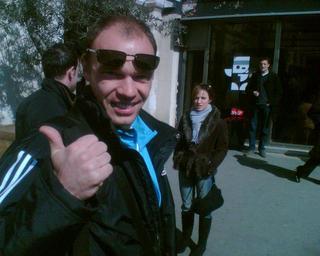 Keywords: YannickQuesnel.jpg Yannick Quesnel en mars 2006 gare St Charles Marseille lors du retour des minots PSG-OM 0-0 own 2006-03 Jerembeye Yannick Quesnel