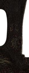 Keywords: Yasuda Masasada - Tsuba with Chinese Star Gods - Walters 51336 - Mark A.jpg The three Chinese star gods Lu Fu and Shou are collectively worshiped to bring good fortune The stars appear at the upper left of the tsuba just above the distant mountains At the lower right of the composition the personifications of the stars stand beneath a pine tree A fourth man has his back to the viewer observing them On the reverse another Chinese gentleman stands gazing to the left In the mountains behind him the top of a temple pagoda stands among the mountain peaks 1st half Other date century 18 mid Edo iron silver gold shakudo cm 6 98 6 58 0 43 accession number 51 336 28742 Henry Walters Baltimore date and mode of acquisition unknown Walters Art Museum Henry Walters Acquired by Henry Walters Signature Masasada place of origin Edo present-day Tokyo Japan Walters Art Museum license Tosogu Japanese sword fittings in the Walters Art Museum Yasuda Masasada Media contributed by the Walters Art Museum needs category review |
