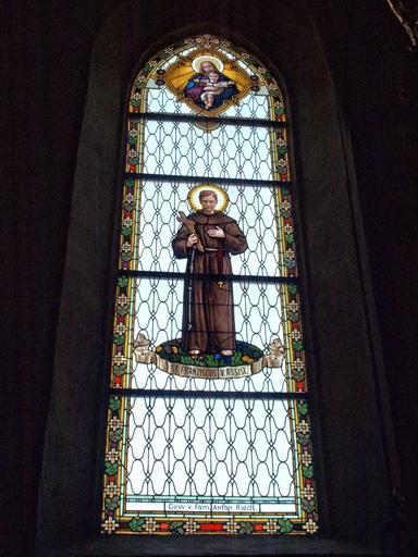 Keywords: ybbs hl laurentius parish church stained glass window lower austria decor symbolic historic religious