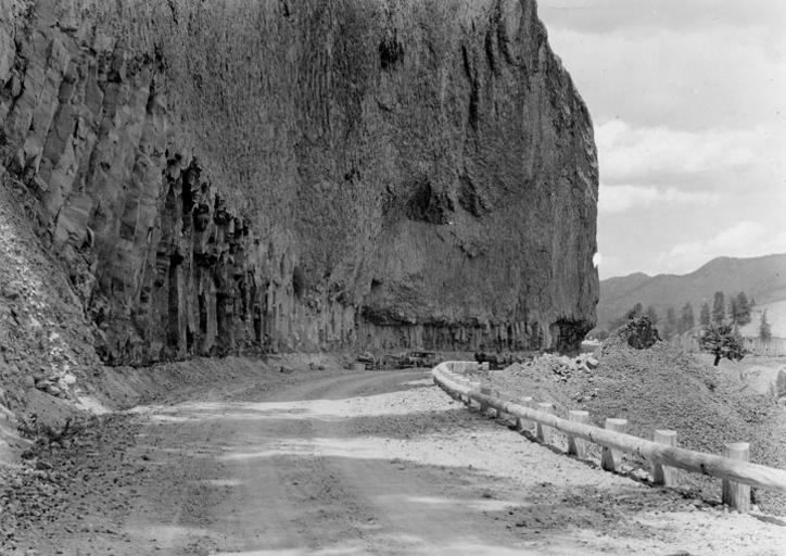 | Keywords: west virginia westvirginia united states of america unitedstatesofamerica blackandwhite monochrome outdoor black and white Road through Columnar Basalt in Overhanging Cliff near Lower Falls showing the same link across the Yellowstone River, Yellowstone National Park, June 21, 1933. National Park Service photograph by George A. Grant; Negative Number Wa.1015. Road through Columnar Basalt in Overhanging Cliff near Lower Falls showing the same link across the Yellowstone River, Yellowstone National Park, June 21, 1933. National Park Service photograph by George A. Grant; Negative Number Wa.1015. |