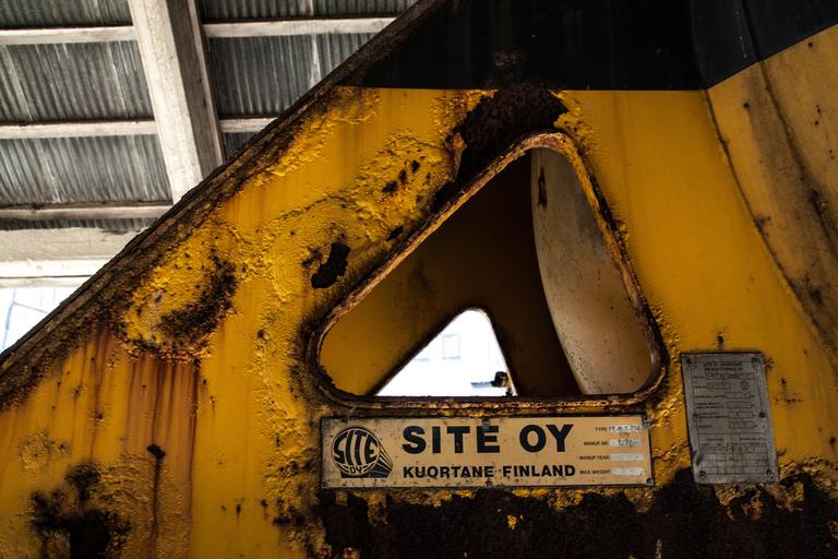 Keywords: yellow dirt rust detail yellow equipment old dirt acrylic artist artistic black brush rusty vintage canvas color colorful creative creativity cracks paint paint falling off splits paint runoff runoff factory empty abandoned