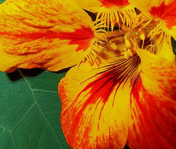 Keywords: yellow red flower pollen close-up macro nature garden colorful