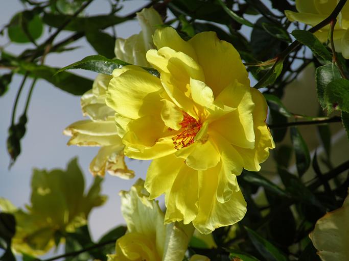 Keywords: yellow rose rose rambler macro nature in bloom stamens