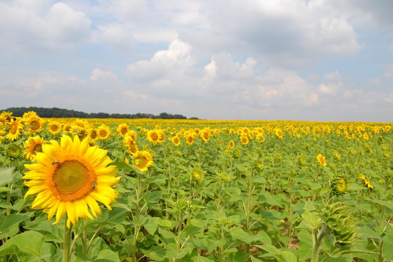 Keywords: yellow sunflower blossom bloom summer plant green sky flower nature