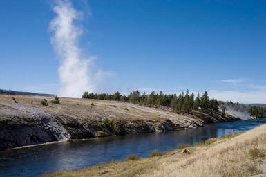 Keywords: yellowstone national park wyoming landscape steam geyser river water stream forest trees nature outside destinations vacation